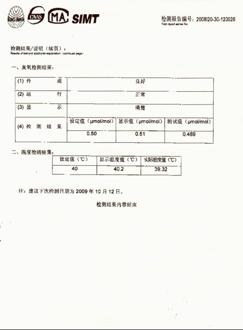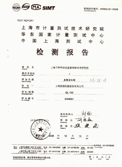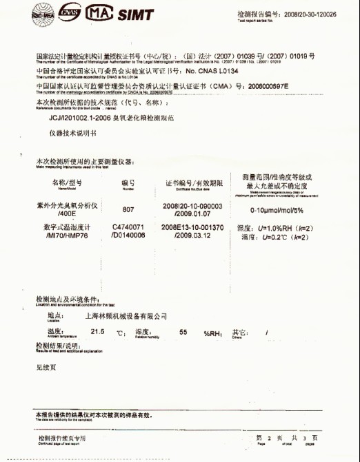 林頻股份與上海市特種設備監督檢驗技術研究所關于臭氧老化試驗箱校準報告